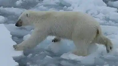 This two year old polar bear was with its mother when photographed on the pack ice south of Franz Josef Land, 18th June 2017, Latitude 78′ 29″ from the Russian nuclear icebreaker ’50 Let Pobedy’ (50 Years of Victory).